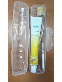 ESTUCHE DENTAL CON CEPILLO , DENTRIFICO Y MINI CEPILLO